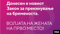 „Одлуката за прекин на бременоста е право на жената и тоа никој не може да и го одземе! Голема благодарност и до граѓанските организации, со кои заеднички го работевме новиот Закон, во интерес на сите жени... Волјата на жената е на прво место“, се вели во пораката на Министерството за здравство, по стапувањето во сила на новиот Закон за прекинување на бременоста